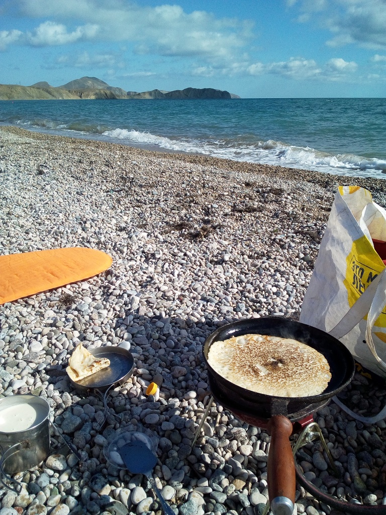 О, блинчики на природе, да ещё к тому ещё жареные на костре - это двойное удовольствие.