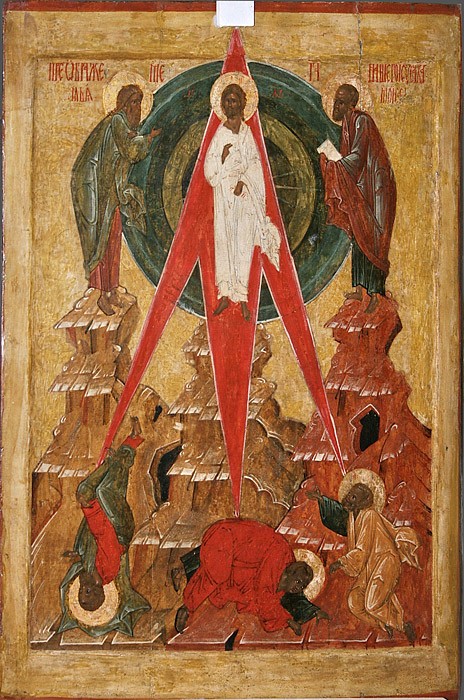 «По прошествии дней шести, взял Иисус Петра, Иакова и Иоанна, брата его, и возвел их на гору высокую одних, и преобразился пред ними: и просияло лице Его, как солнце, одежды же Его сделались белыми, как свет. И вот, явились им Моисей и Илия, с Ним беседующие. При сем Петр сказал Иисусу: Господи! хорошо нам здесь быть; если хочешь, сделаем здесь три кущи: Тебе одну, и Моисею одну, и одну Илии. Когда он еще говорил, се, облако светлое осенило их; и се, глас из облака глаголющий: Сей есть Сын Мой Возлюбленный, в Котором Мое благоволение; Его слушайте. И, услышав, ученики пали на лица свои и очень испугались. Но Иисус, приступив, коснулся их и сказал: встаньте и не бойтесь. Возведя же очи свои, они никого не увидели, кроме одного Иисуса. И когда сходили они с горы, Иисус запретил им, говоря: никому не сказывайте о сем видении, доколе Сын Человеческий не воскреснет из мертвых» (Мф. 17. 1–9).