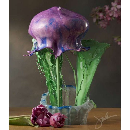 Красота, создана британским фотохудожником из подкрашенной жидкости, которую он льет на стол и фотографирует. Иногда формы напоминают морских медуз, а иногда – оригинальные цветы.