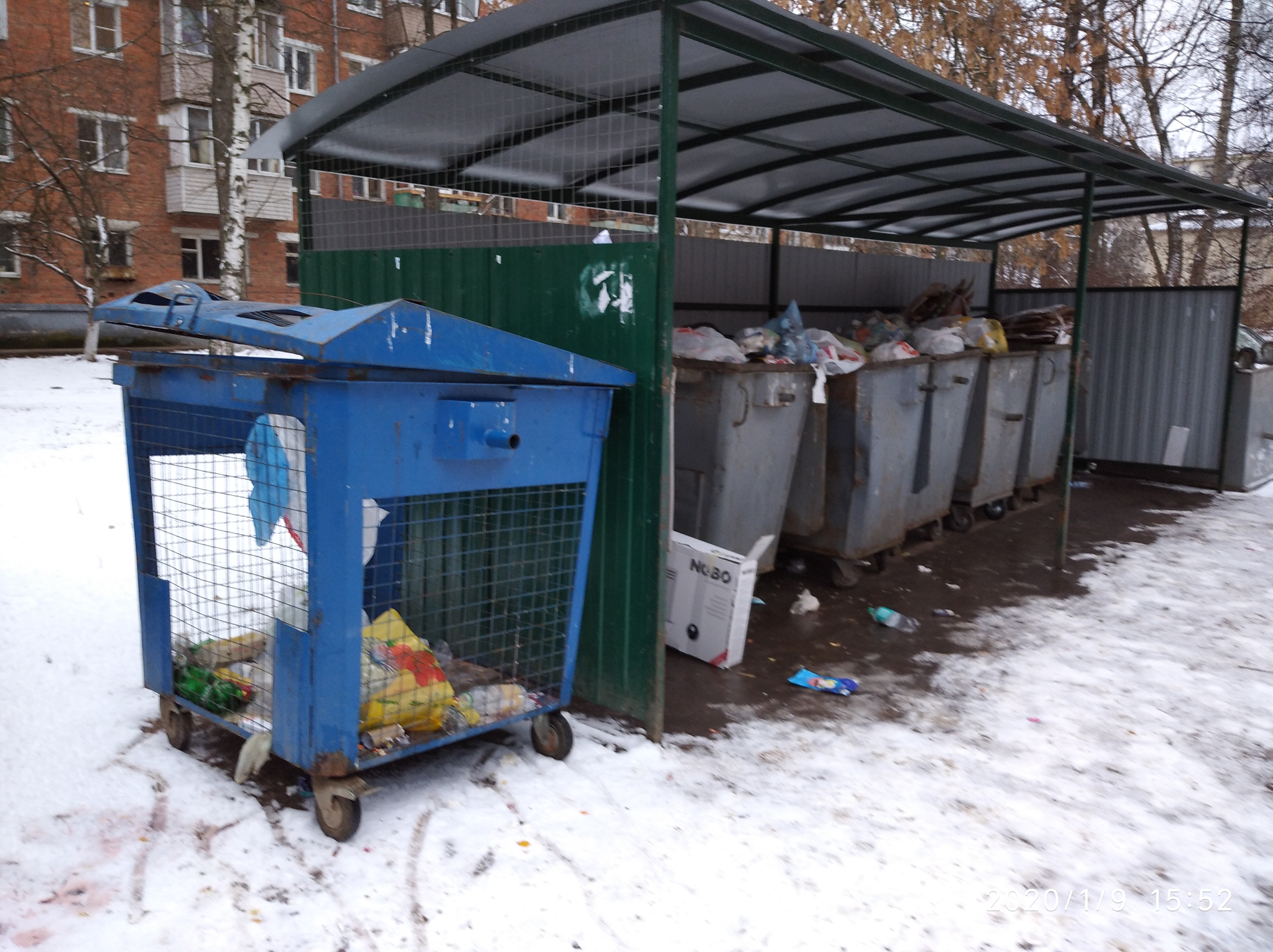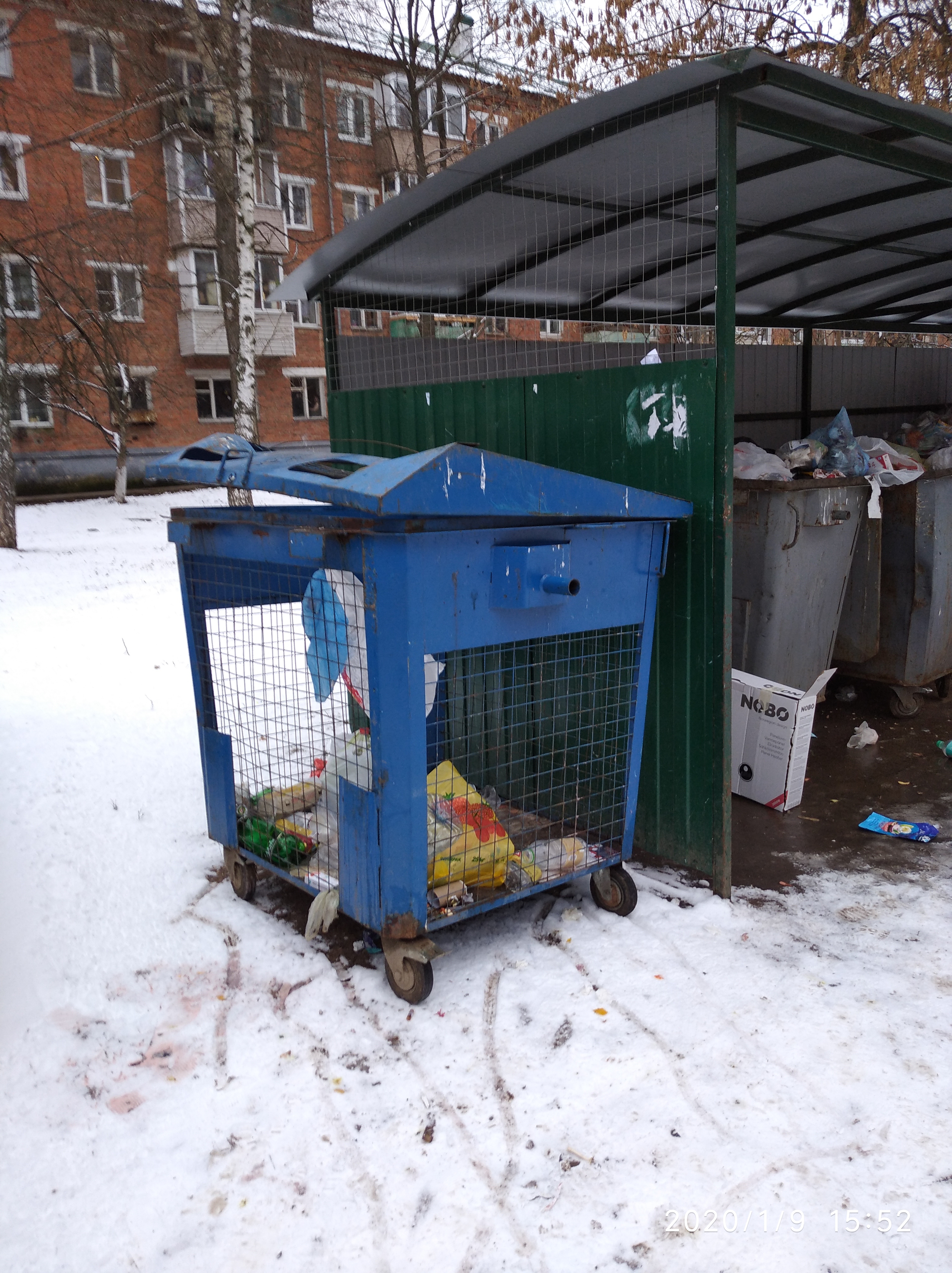 на данном участке в кадр попали все мусорные бачки, их всего два, но видимо из-за того, что тут частный сектор в основном и объёмы утилизации не большие.
