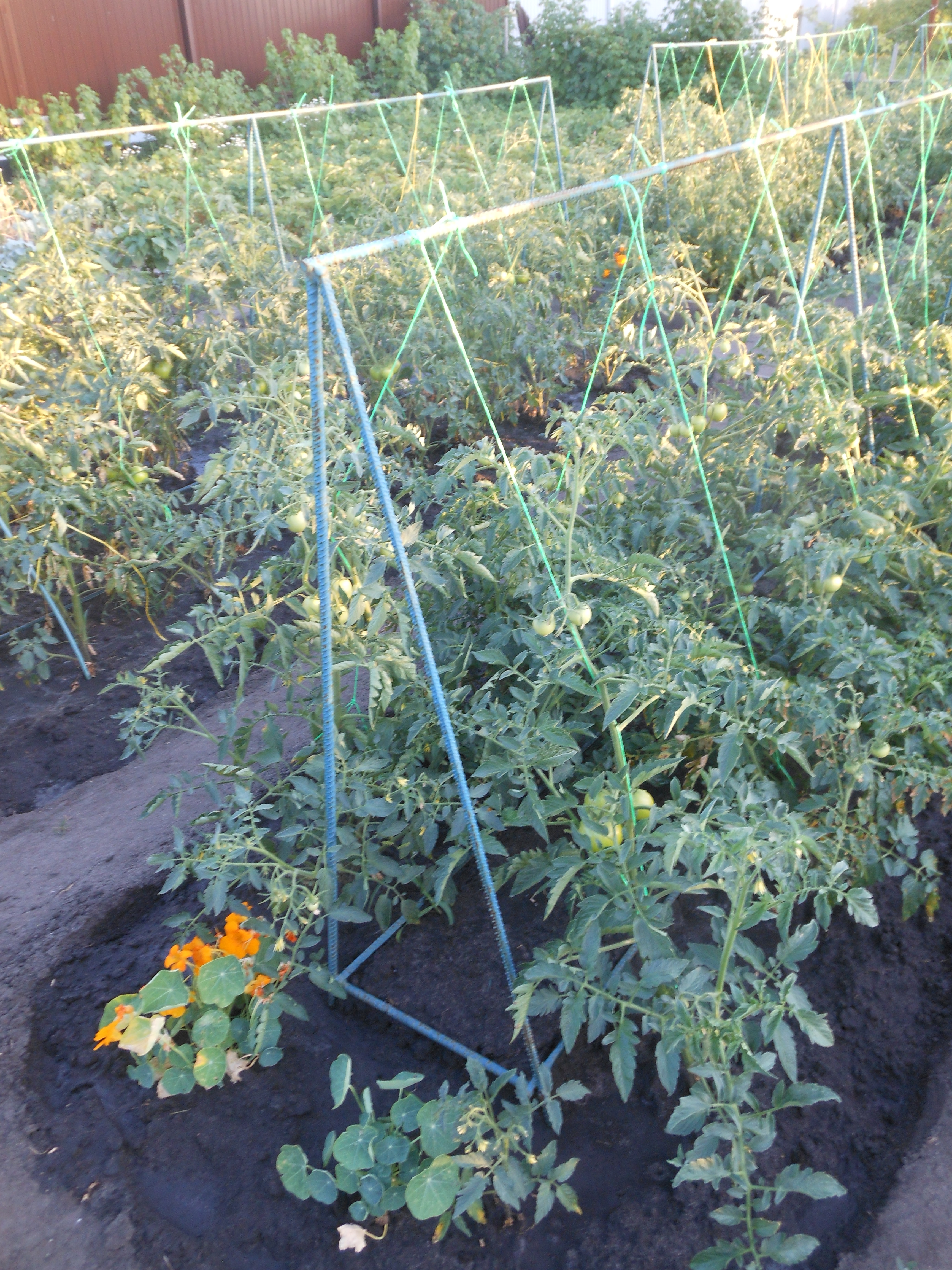 Допустим 4 помидора . в середине кустов ямка в неё и лей .