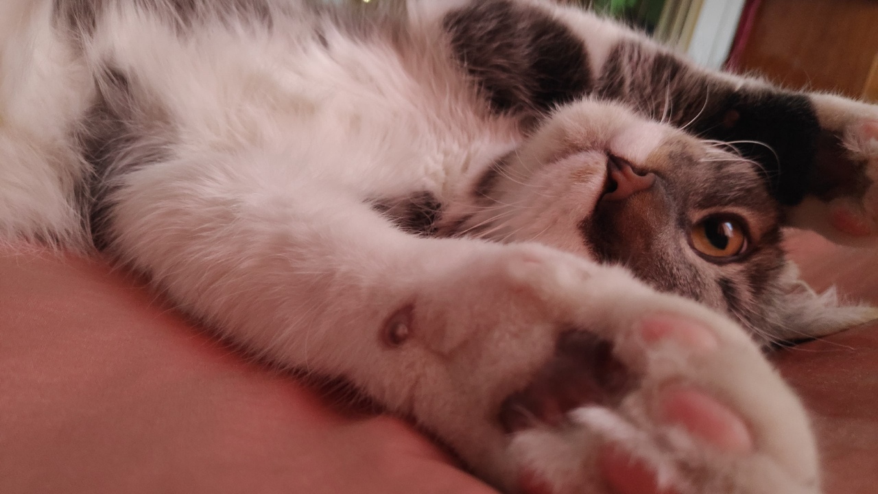 Крупный котик будет, судя по размеру лап.