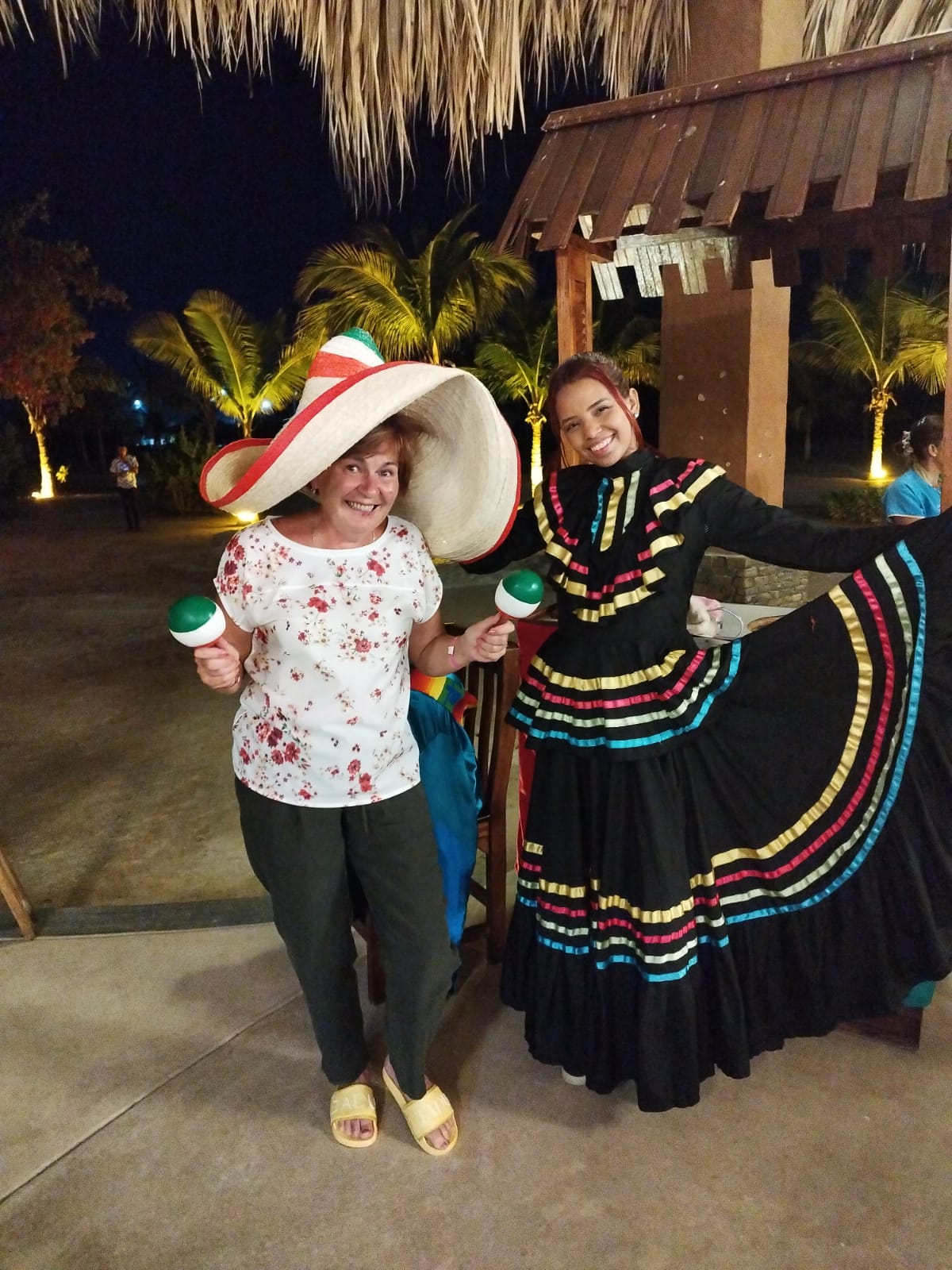 Это был вечер мексиканской кухни, в шляпе я утонула, смелся весь ресторан...)))