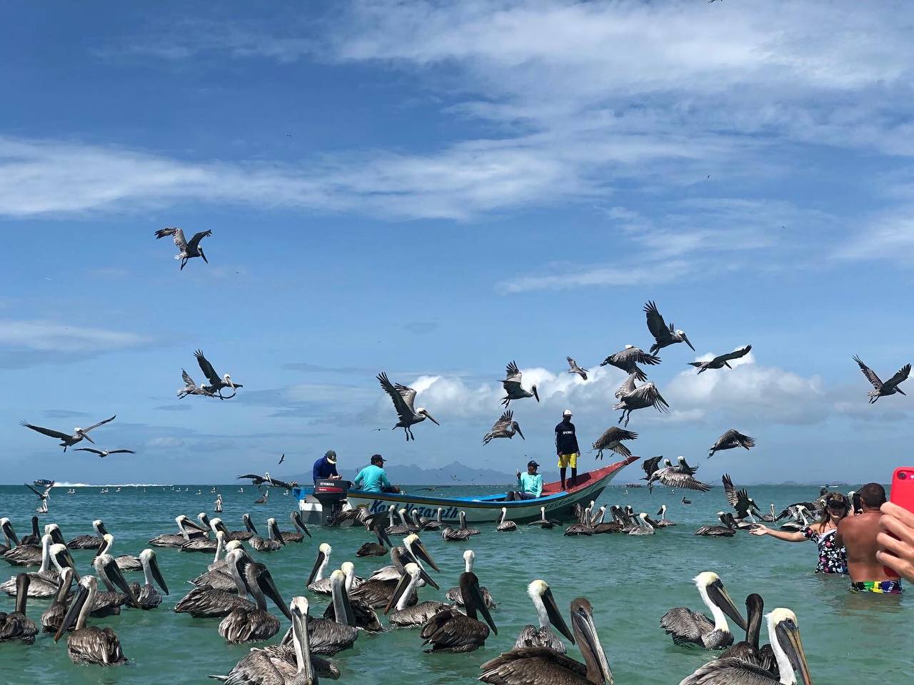 В отличие от Кубы здесь большие супермаркеты с самыми разнообразными продуктами, такого дефицита нет, но для простых венесуэльцев цены не подьемные. Всё из-за курса доллара, 1$=250000 боливаров (примерно, он меняется каждый день, есть и черный курс, там такая мешанина, что туристы на местные боливары доллары и не меняют, магазины принимают доллары, как-то там считают и даже дают сдачу, кроме того нас предупреждали, что много в обиходе фальшивых денег). Мы вышли за границу нашего пляжа и дочь моя кормила собак, она всегда берет сухой корм, проходящий мимо рыбак показал на мальчонку и попросил дать ребенку еды. Дали булочки из нашего ресторана, рыбак взамен дал нам 1 миллион боливаров, как мы не упирались, он говорил "презент"