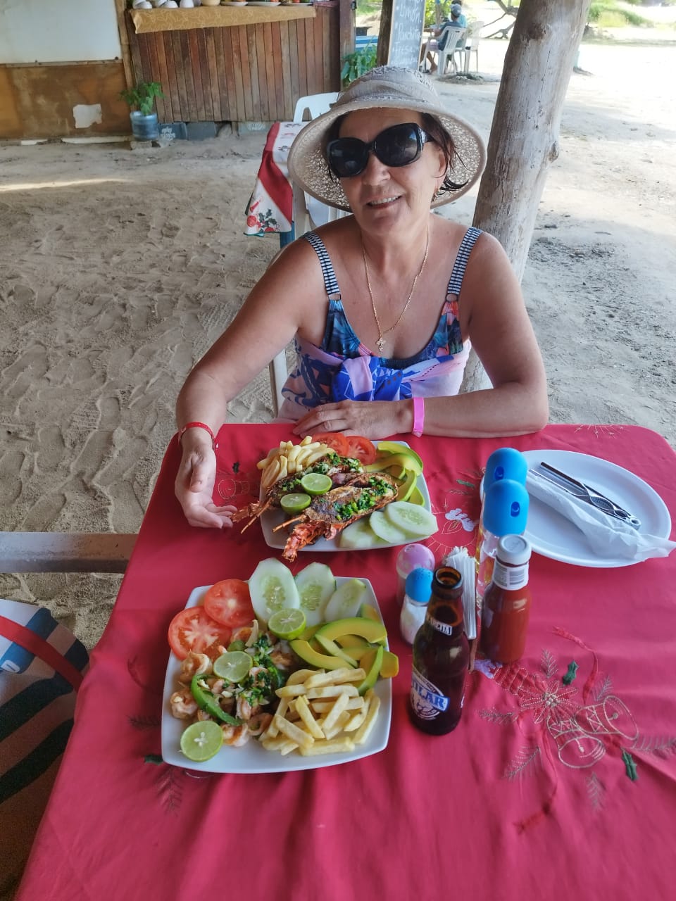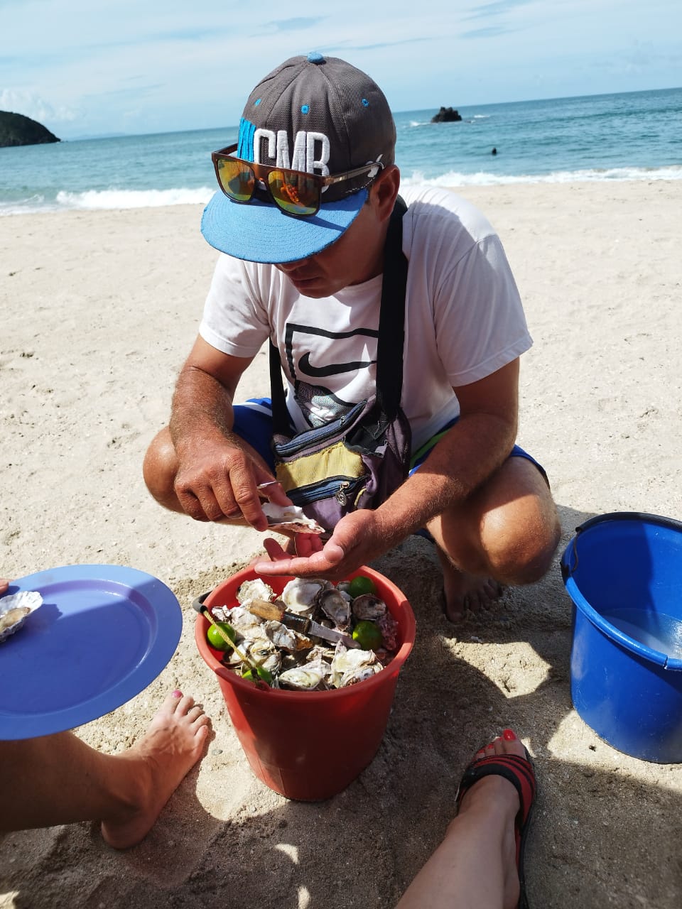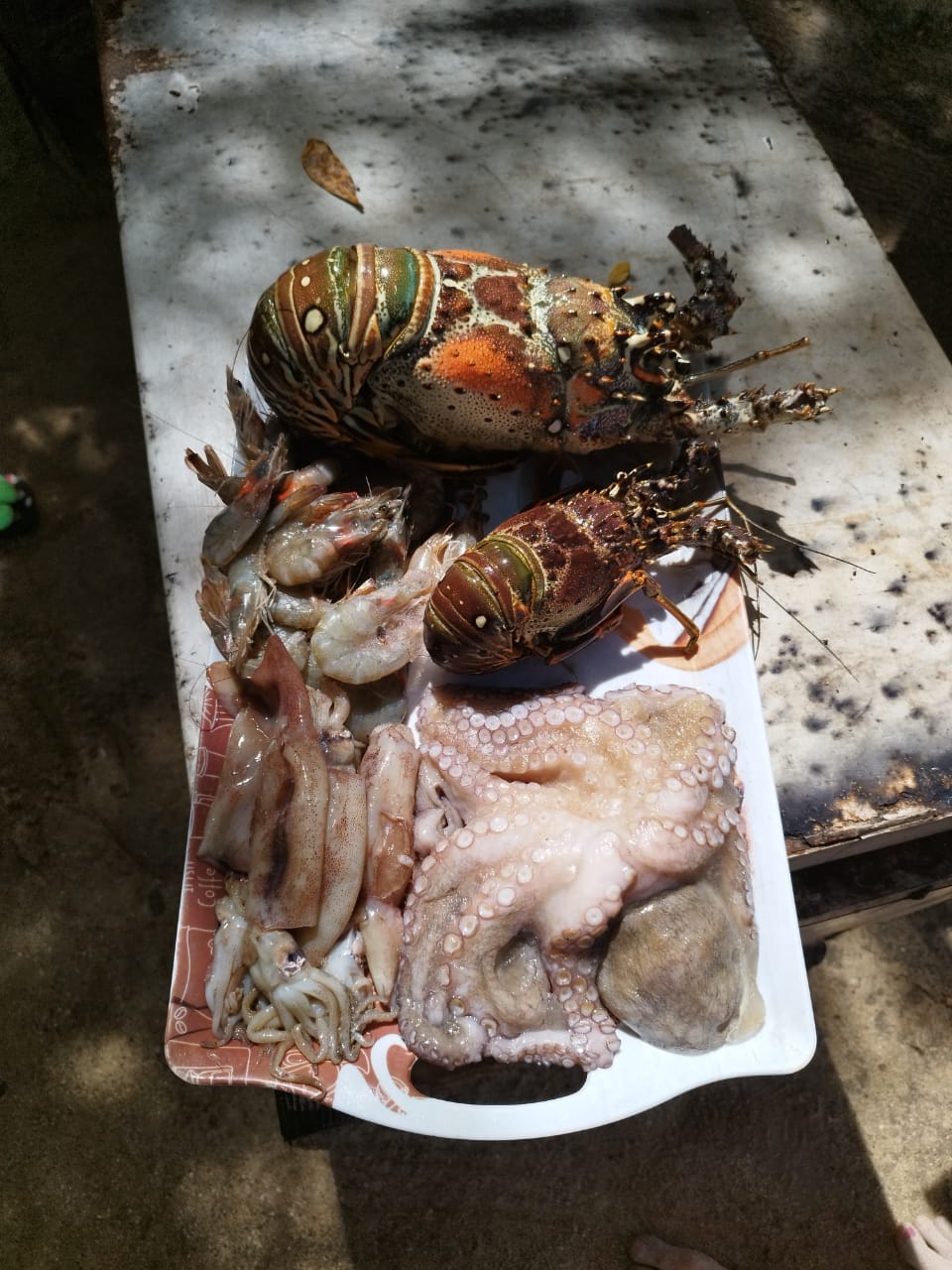 Морских чудищ можно попробовать либо в Сарагосе, соседняя деревня в 20 мин хотьбы или за границей отельного пляжа. Местные там устроили маленькие кафешки, массаж, продают фрукты, жемчуг, ракушки