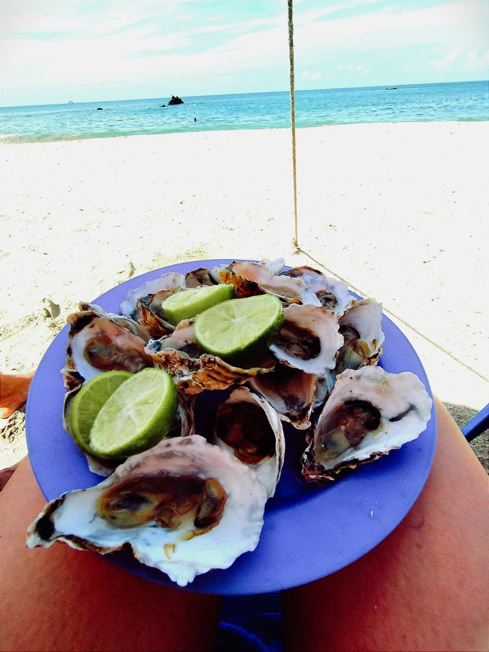 Устрицы нося в ведрах, тут же тебе почистят, лайм дадут 5$ за 20 шт