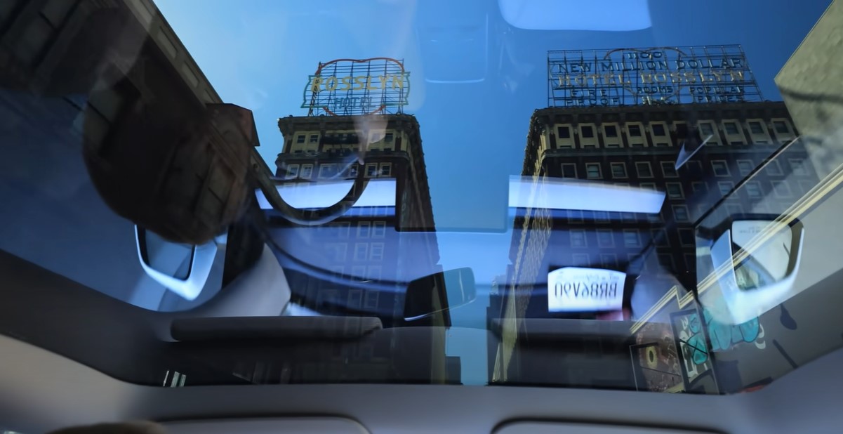Еду в Тесле с прозрачной крышей от АС Мариотт, где проходит форум, в сторону 6 авеню. В смысле не сама еду... везут меня, я с заднего сидения сделала пару фото. Прозрачная крыша - это прикольно.....