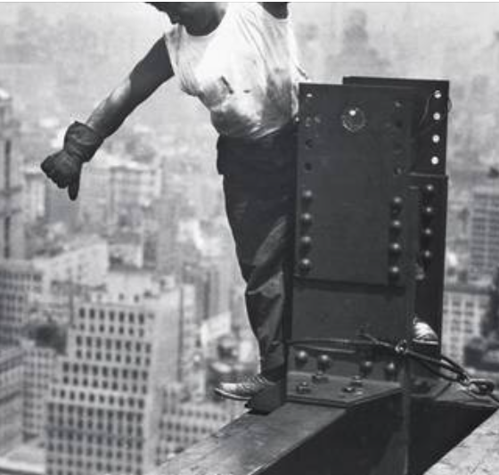 Вполне можно. Если другая нога стоит вдоль ступеньки этого двутавра (кажется так это называется, а голень упирается в его верхний край, то стоит человек на левой ноге достаточно прочно. А правой он себя страхует от заваливания назад.