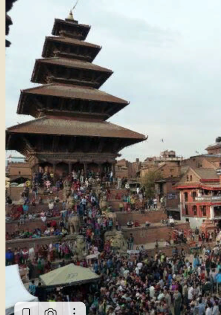 Храм на фото это Ньятапола или иногда его на местном наречии называют Рьятапола. Построен в самом начале 18 века за 6 месяцев. Он посвящен богине Лакшми-Нараяни, то есть аспекту Лакшми, (супруга Вишну) которая является спасительницей. Внутри храма размещена 3 метровая мурти Лакшми-Нараяни, которая стоит на плечах разрушительного аспекта Шивы - Байравы. Тем самым, как бы нейтрализуя его влияние, создавая в обществе мир и благость. Дело в том. что не так далеко от этого места стоял и храм Байравы. Это один из немногих храмов в которых стоит одухотворённая мурти, то есть живая. Внутрь храма обычных граждан не пускают. Мурти там реально сильная и держит храм. В буквальном смысле. Он пережил все самые разрушительные землетрясения, в то время, как многие менее высокие храмы были частично или полностью разрушены за это время несколько раз. Этот стоит.