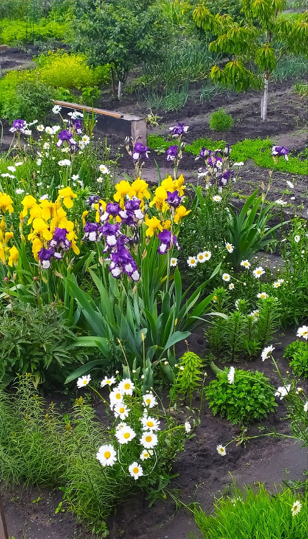А тем временем у меня цветут ирисы и ромашки, а пионы, как шпионы, никак не распускаются, видимо, недовольны погодой.